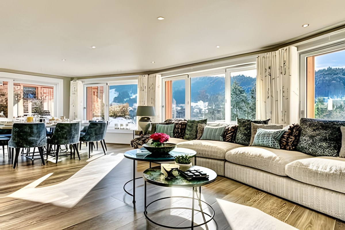 Ekskluzivna panoramska planinska kuća usred najviših planina! Opustite se u ovom posebnom i skrovitom prostoru. Neka vaš um odluta i pobjegne od stresnog svakodnevnog života u zapanjujućem planinskom svijetu. Uživajte u ugodnim večerima ispred kamina ili se opustite u sauni. Iz masažne kade možete uživati u neometanom pogledu na okolne planine. Veličanstvena panoramska terasa i veliki prozor omogućavaju jedinstven pogled.