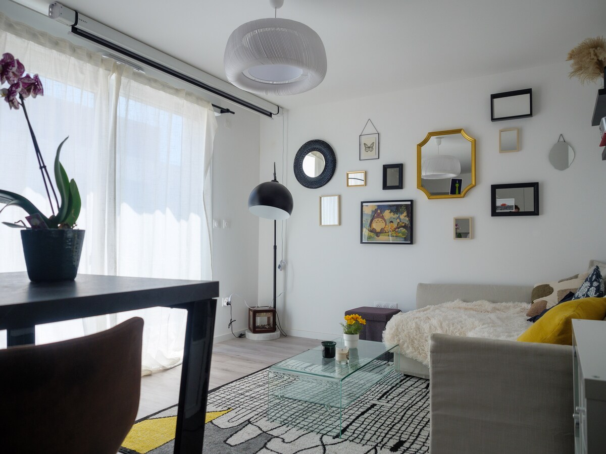 Ugodan stan u mirnom području, u blizini svih sadržaja. Smješteni uz pješačku stazu sa zelenim, lisnatim pogledom, uživat ćete u mirnom okruženju i balkonu savršenom za opuštanje. Samo 10 minuta od željezničke stanice i 15 minuta od centra grada javnim prevozom, idealan je za istraživanje područja. Trgovina udaljena samo 2 minute hoda ima sve što vam je potrebno za boravak. Potpuno opremljen, stan pruža svu udobnost koja vam je potrebna za praktičan i ugodan boravak.