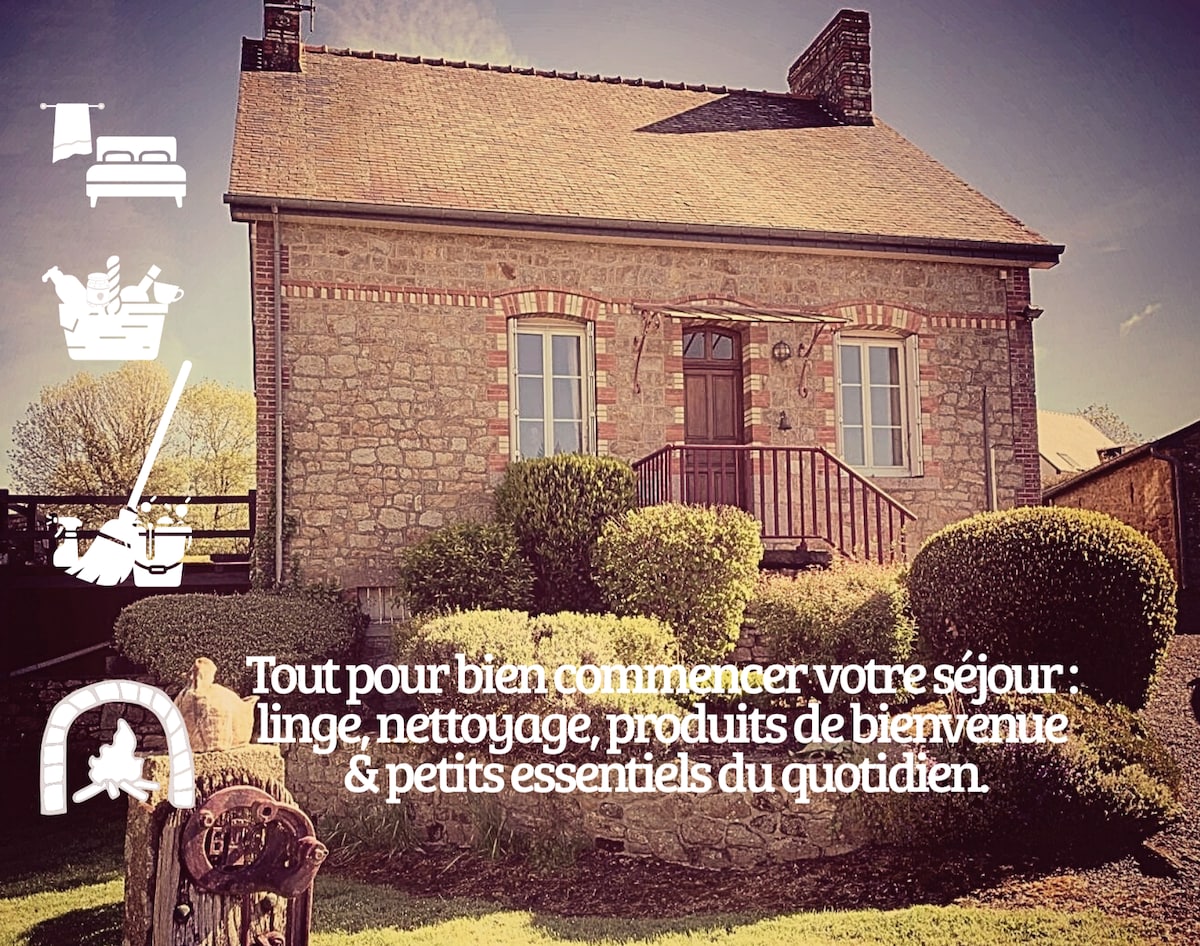This is an old outbuilding where cider was made, completely renovated on 36m2 on the ground with a floating mezzanine floor. The accommodation is independent and offers all the modern comforts of a current home with all the useful equipment. The private park of more than 5000m2 is accessible to travelers who can also go see the goats and sheep in their enclosure.