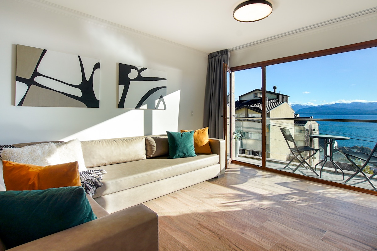 Ovaj luksuzni stan na posljednjem spratu pruža direktno na jezero i ima sve: brišući, neometan pogled na jezero i planine od 360°, dva odvojena balkona, direktan pristup obali jezera i brz Wi-Fi. Uprkos tome što je samo nekoliko minuta hoda od centra i povoljno smješten na glavnoj aveniji uz jezero, stan je tih, miran i potpuno osamljen. Gosti su pozvani da uživaju u pogledu kroz ogroman trostruki prozor dok sunce izlazi iznad patagonske stepe i zalazi iznad Anda.