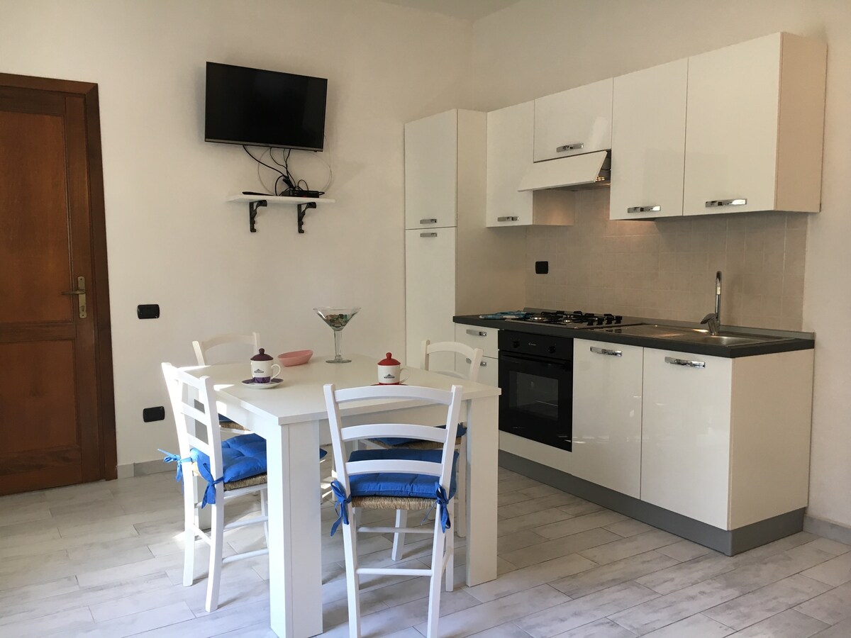 Stan koji se nalazi na prvom spratu male zgrade u Via Tibuli može primiti do 3 osobe. Prostor se odlikuje savremenim dekorom opremljenim svime što vam je potrebno za bezbrižan odmor. Lokacija, vrlo mirna, omogućava vam da stignete u šetnju od oko 15 minuta, u historijski centar sela ili prekrasnu plažu Rena Bianca.