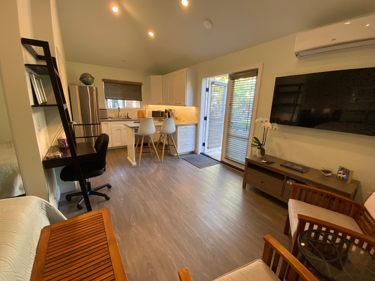 Mirovno utočište. Sigurna, šarmantna, novouređena gostinjska kuća s 1 spavaćom sobom u stambenom području Kentwood u Westchesteru. Jednostavno parkiranje na ulici. Pješačka udaljenost od LMU-a, supermarketa i sadržaja u okruženju. 10 minuta vožnje do aerodroma LAX, plaže Playa Del Rey i SOFI-ja. Vozite se sjeverno obalom do MDR-a, Venicea, Malibua. Dnevni boravak/kuhinja otvorenog tipa sa svim sadržajima. Dnevni boravak se otvara prema privatnom vanjskom prostoru za sjedenje. Pogled iz spavaće sobe na otvoreni prostor. Zajednički prostor za jelo za 6 osoba/roštilj.