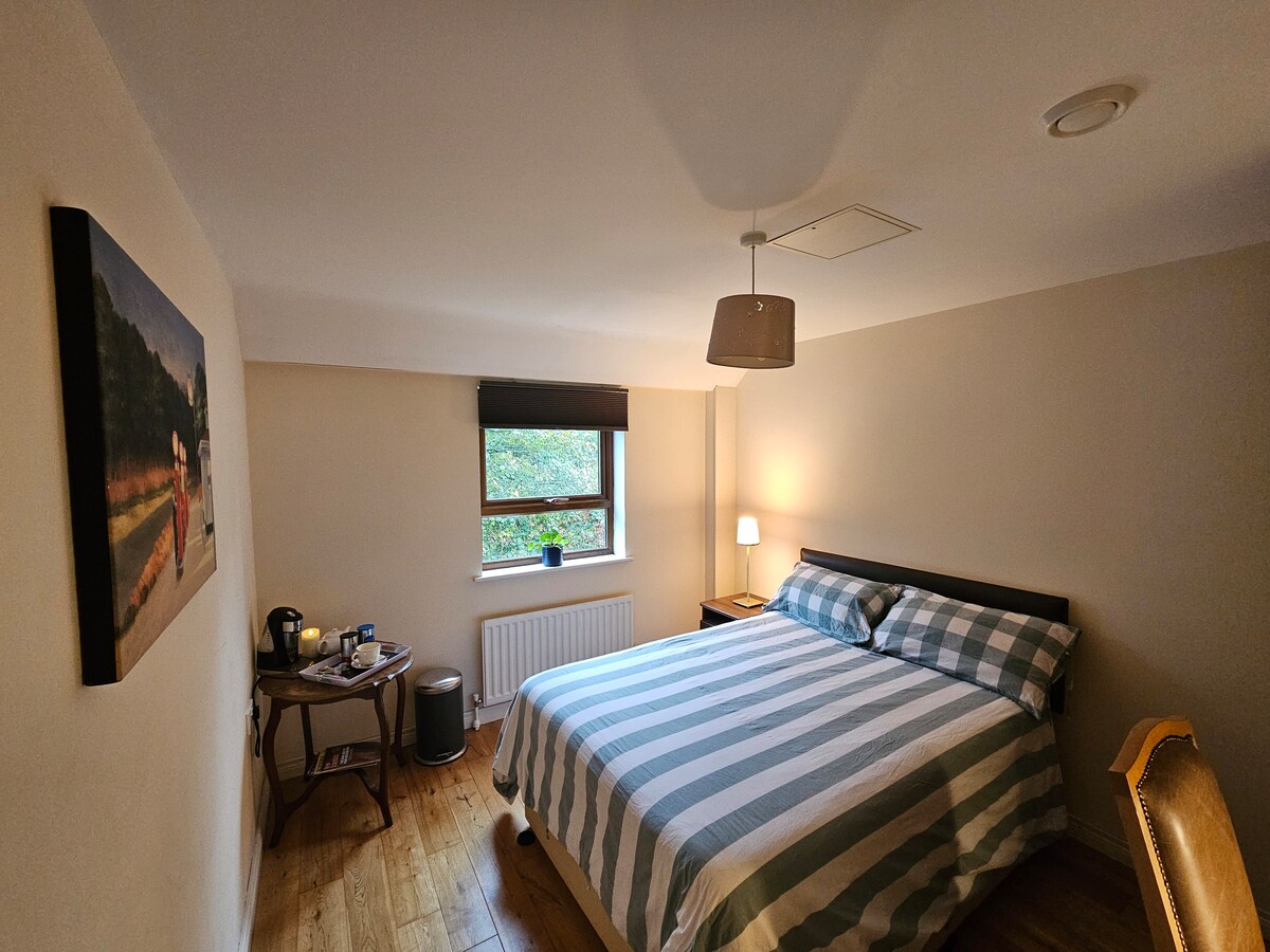 Our 1 bedroom, self contained apartment is on site at our newly built home. We have free, secure parking outside the apartment. It is fully equipped with everything you will need for your stay, including cooker, dishwasher, washing machine, hoover, hair dryer, iron, extra bed sheets, towels, blankets and pillows. There will be some toiletries and condiments for your use. We are based just outside of Lisburn on a 1 acre site surrounded by fields, the area is extremely peaceful.