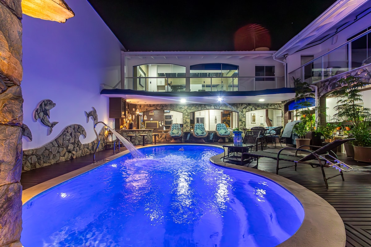 Casa completa para viver dias memoráveis. Acomoda até 12 pessoas, com ambientes amplos e bem distribuídos. Área externa com churrasqueira, piscina aquecida, jacuzzi e jardim. Para relaxar e curtir muito suas férias, mais duas banheiras nas suítes, cinema privativo e academia equipada. Quartos confortáveis com roupa de cama padrão hotelaria e amenidades L’Occitane em todos os banheiros. Ideal para famílias e grupos que buscam conforto, privacidade e uma experiência acima do comum.