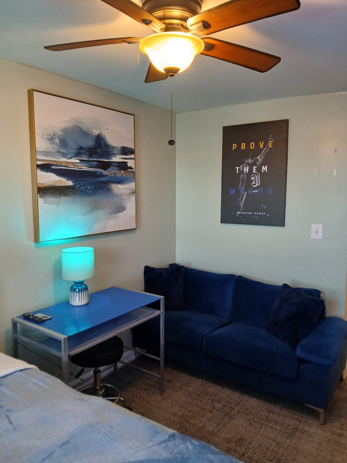 Welcome to this comfortable, 2 bd, 2 bth 2nd floor apartment with sleeper sofa for additional guests-modern retreat in the heart of Laurel that offers the perfect blend of tranquility and convenience. You’ll have easy access to both DC and Baltimore, making it ideal for exploring the best of both cities! Inside: stocked kitchen, cozy living area with wood-burning fireplace, fast WIFI, not some, but all premium channels, and your own private balcony!