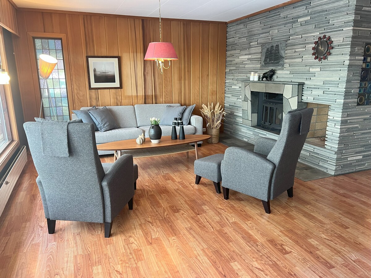 Delikatna i potpuno renovirana brvnara s novouređenim aneksom, samo 20m od obale. Sve je novo i nadograđeno u 2020/2021. godini, a čini se da je brvnara vrlo efikasna i bogato uređena, uprkos skromnim ciljevima. Ima mjesta za punih 13 osoba i krevet za bebe: ukupno 14 osoba. Međutim, najprikladniji je za jednu porodicu. Parcela se nalazi direktno okrenuta prema zapadu i cijeli dan ima sunce s tri plitke pješčane plaže. Brygge and possible to rent our boat, a sting 535 PRO with 50 hp for kr. 5,000 per week.