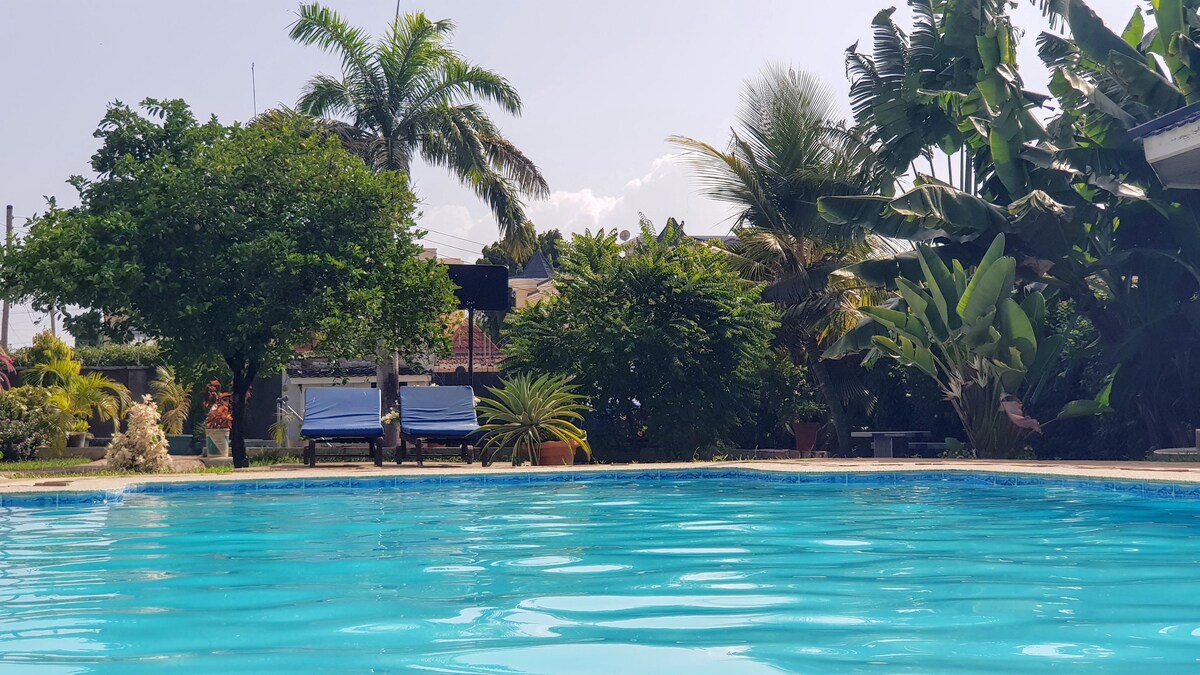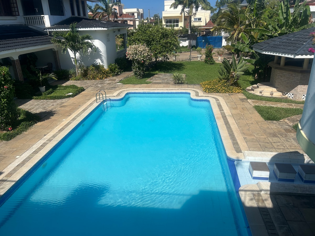 Uživajte u mirnom boravku u mirnom okruženju, samo 8 minuta od javne plaže Jomo kenyatta 8 minuta od gradskog tržnog centra Nyali. Bilo da ste u gradu zbog posla, safarija ili opuštajućeg odmora, imat ćete sve što vam je potrebno, uključujući brzi Wi-Fi, tuš, potpuno opremljenu kuhinju i opuštajući prostor za uživanje u boravku