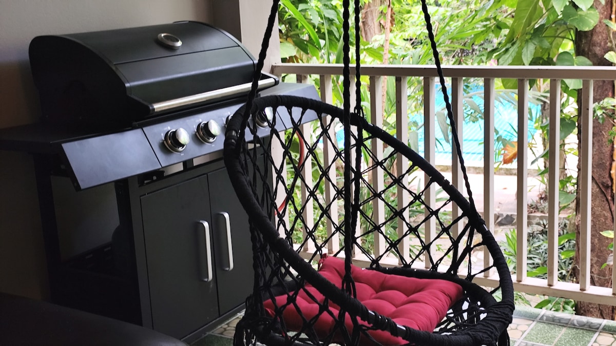 Prekrasna jednosobna kuća s velikim privatnim vrtom i visećom ležaljkom. Mali razvoj četiri privatne kuće s velikim ZAJEDNIČKIM bazenom s morskom vodom. Smješten u vrtu od 10 rai (16.000 m2), ovo je vrlo privatno i tiho mjesto, okruženo planinama, a samo nekoliko minuta hoda (800 m) udaljeno od plaže.