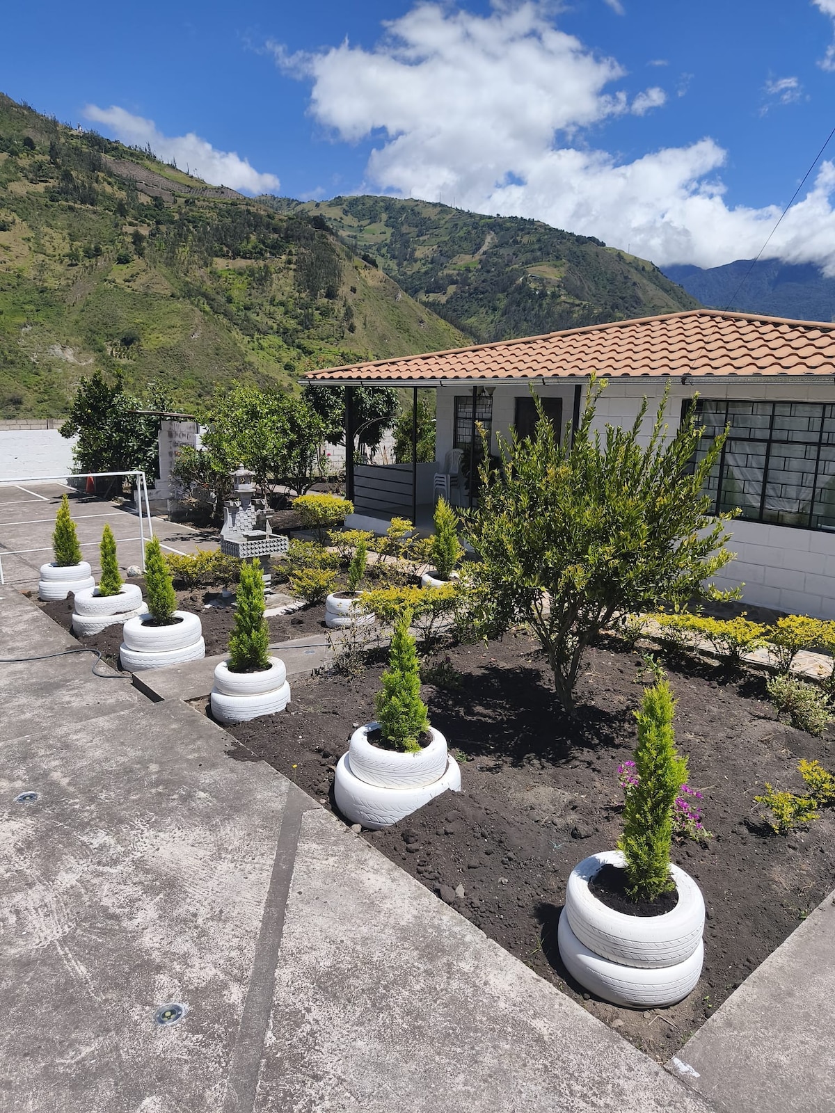 Uključuje doručak u kući, s visokim ocjenama naših gostiju. Nezavisna, udobna i sigurna kuća s pogledom na vulkan Tungurahua i pet minuta od centra grada, u neposrednoj blizini restorana, kafića, parkova i svih turista koje možete pronaći u Bañosu, andskom uglu okruženom vodopadima i planinama punim šarma i krajolika. Idealno za putovanja odmora, zabave ili rada kod kuće, u prirodnom i jedinstvenom okruženju. Uvijek će mi biti zadovoljstvo da vas uslužim.