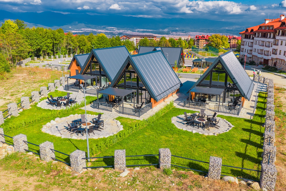 Dear guests, let me introduce you a wonderful Alpine style house.The house is located in the best location of the complex and in the best mountain complex in Bulgaria "Pirin Golf Resort" near Bansko. Wood and stone, huge windows with a lot of light, a burning fireplace, a noisy company or a quiet romantic weekend - everything is for you. Incredible views of mountain peaks that look right at you wherever you are - on the terrace or in the bedroom. Fresh air and you are inside nature itself!