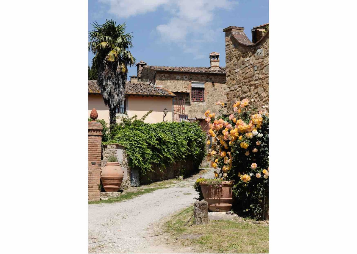 Stara kamena kuća iz 15. vijeka u malom obnovljenom srednjovjekovnom zaseoku u srcu Chianti Classica. Nalazi se na vrhu brda između Firence, Siene i San Gimignana. TENISKI TEREN I BAZEN Sjajan pogled na dolinu. Nezavisni ulaz; U prizemlju: veliki dnevni boravak s dvije sofe, trpezarijom i otvorenom kuhinjom. Na 1. spratu: 2 spavaće sobe i 1 kupatilo s tušem; Privatni vrt s terasom – stol i stolice za jelo ispod sjenice i ležaljke za sunčanje