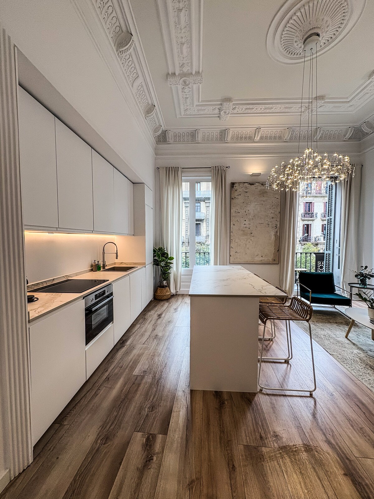 Nevjerovatna lokacija! Vaš stan, potpuno renoviran, nalazi se u samom centru Eixamplea, samo 3 bloka od trgova Catalunya i Paseo de Gracia, okružen osnovnim arhitektonskim remek djelima modernih majstora, kao što su Gaudi i Puig i Cadafalch, i vrlo blizu četvrti Born i Gótico: nalazite se u samom srcu Barcelone.