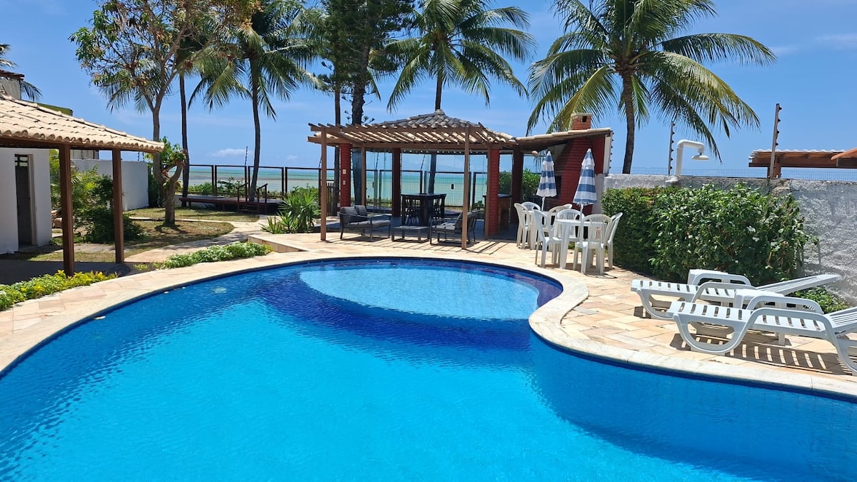 Prekrasna kuća uz more, s nevjerovatnim bazenom i velikim vrtom, balkonom s visećim ležaljkama, roštiljem, dvorištem s voćkama, velikim dnevnim boravkom, 3 apartmana s klima-uređajem, kupatilom za druženje, potpuno opremljenom kuhinjom i prostorima za nekoliko automobila. Gosti će i dalje imati na raspolaganju stolice i peškire za plažu i bazen. Nalazi se nekoliko kilometara od šarmantnih plaža Sonho Verde i Carro Quebrado. Vi i vaša porodica ćete pronaći slobodno vrijeme, odmor i mnogo kontakta s prirodom.