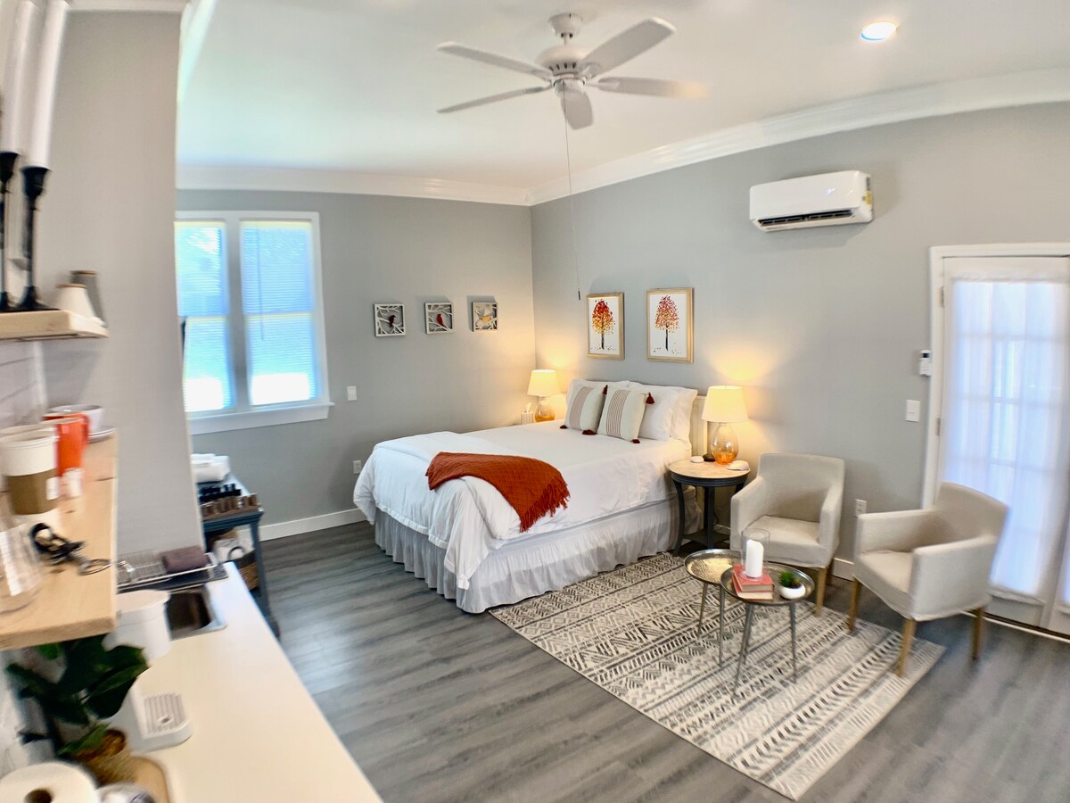 Enjoy a taste of the simple life in our secluded barn apartment at Elizabeth Farms. There are an array of farm animals on property for your viewing pleasure. Hiking trails are nearby at Fort Yargo State Park and Harbins Park, as well as equestrian trails. Close to Athens and Chateau Elan. This cozy studio sleeps 4 with a king bed and a queen sleeper sofa, full kitchen, smart tv and full bathroom. Private entrance and patio with fire pit that overlooks the pasture.