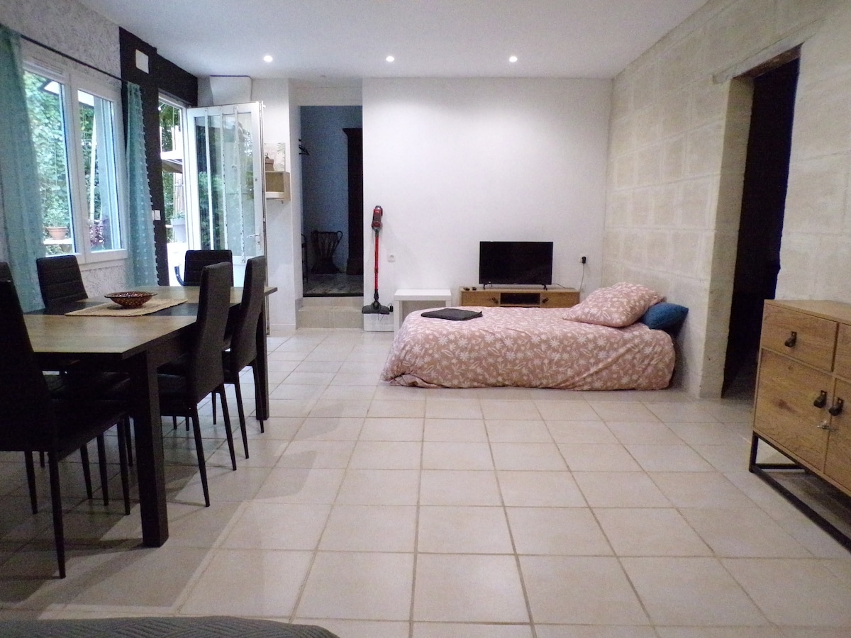 STUDIO INDEPENDANT RÉCENT DE 50m2 A PREIGNAC/LIMITE TOULENNE PRES DE LA ROUTE DE BORDEAUX (D113). ENSEMBLE TOUT EQUIPE EN 2 PARTIES (1x HABITABLE DE 27m2 + 1xTERRASSE/CUISINE D'ETE COUVERTE DE 23 m2 + ACCES POSSIBLE A LA PISCINE DE MAI A FIN SEPTEMBRE AU CALME AU MILIEU DES VIGNOBLES DU SAUTERNES , PRES DE TOUTE COMMODITE : GARES DE LANGON (4km) DE PREIGNAC (1,5km) , l'ACCES A l'A62 & LANGON (5km ), DES PRINCIPAUX COMMERCES , DES COLLEGES, LYCEE,..ET DE BORDEAUX (30minutes)
