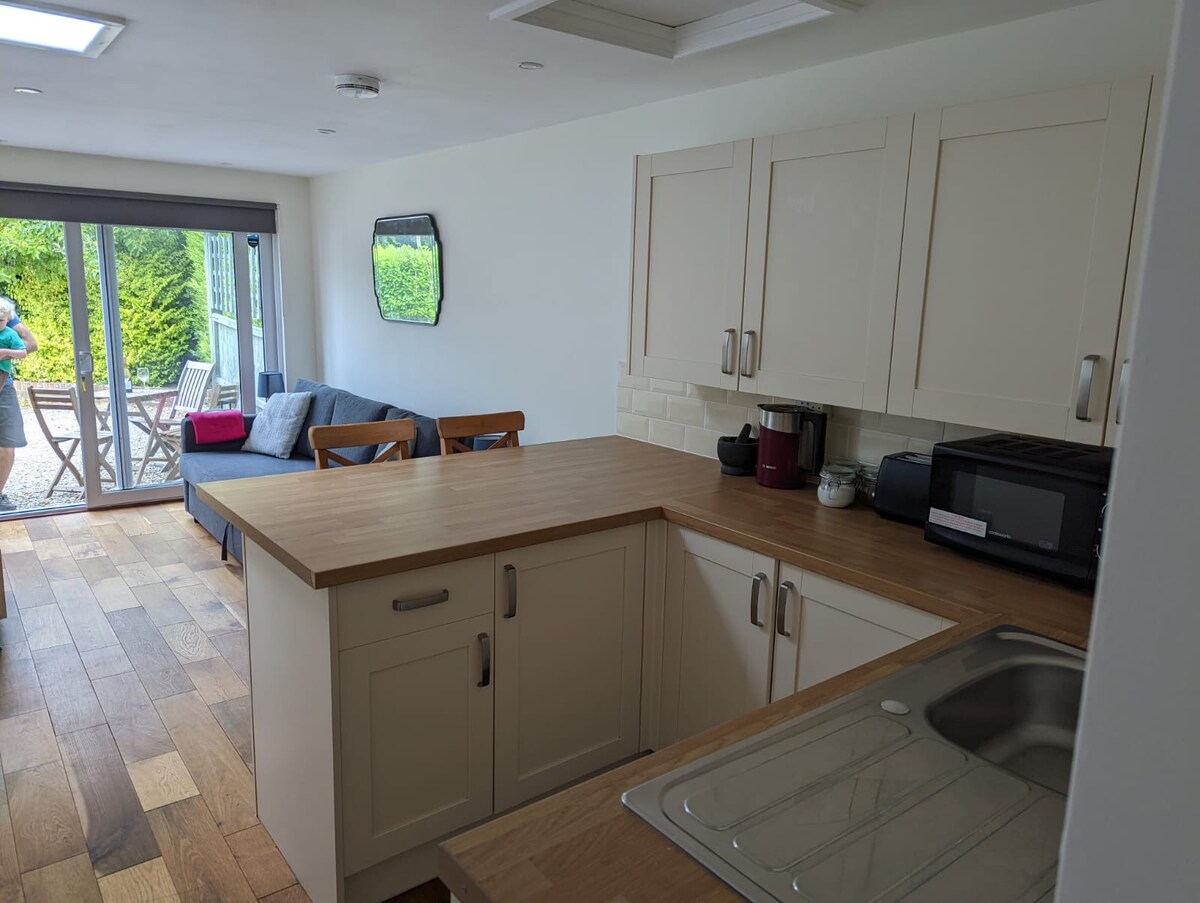 Moderna, udobna, potpuno samostalna pomoćna zgrada s mogućnošću korištenja prednjeg vrta i ljetnikovca. Spava 4 osobe s bračnim krevetom na spratu na međuspratu i izvlače dvostruki kauč na razvlačenje u prizemlju. Potpuno opremljena kuhinja s perilicom rublja i užetom za sušenje rublja koje se nalazi pored parkinga. Samostalni dolazak uz kutiju s ključevima. Veliko, moderno kupatilo s grijačem za peškire i električnim tušem. Idealna lokacija za šetnju i vožnju biciklom. Samo 5 minuta vožnje do Peppa Pig Worlda i 25 minuta do prekrasne obale i plaža.