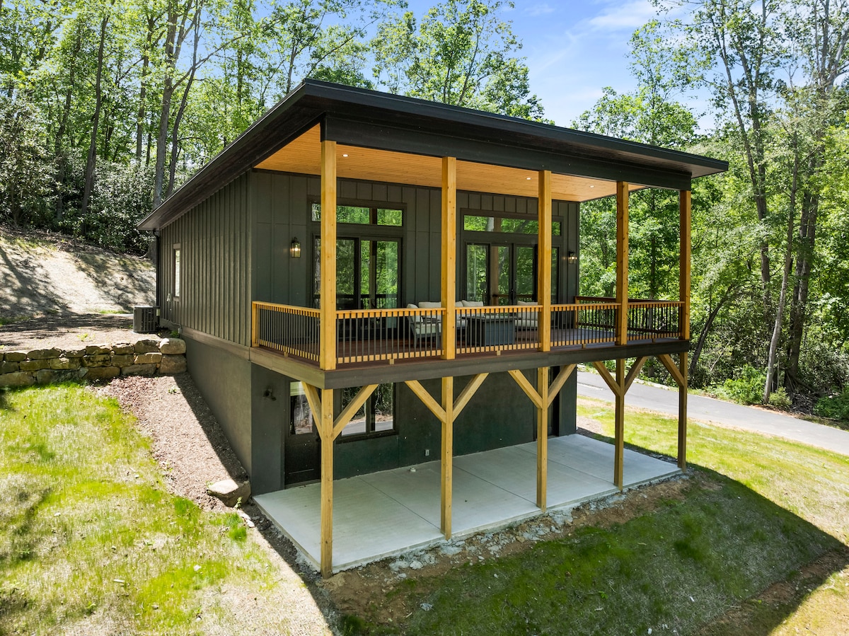 Asheville vas zove nazad – budite dio povratka Asheville je otvoren i živahniji, otporniji i odlučniji nego ikad; nedavno ga je Forbes Travel Guide i New York Times proglasio najboljom destinacijom za 2025. godinu. Naš luksuzno-romantični savremeni planinski dom smješten je u Fairviewu, Sjeverna Karolina. Samo oko 14 milja (otprilike 22 minute) vožnje do centra Ashevillea. Okružen zvukovima prirode, zajedno s vanjskom privatnom masažnom kadom + plinskim ognjištem + i svim udobnostima planinskog života.