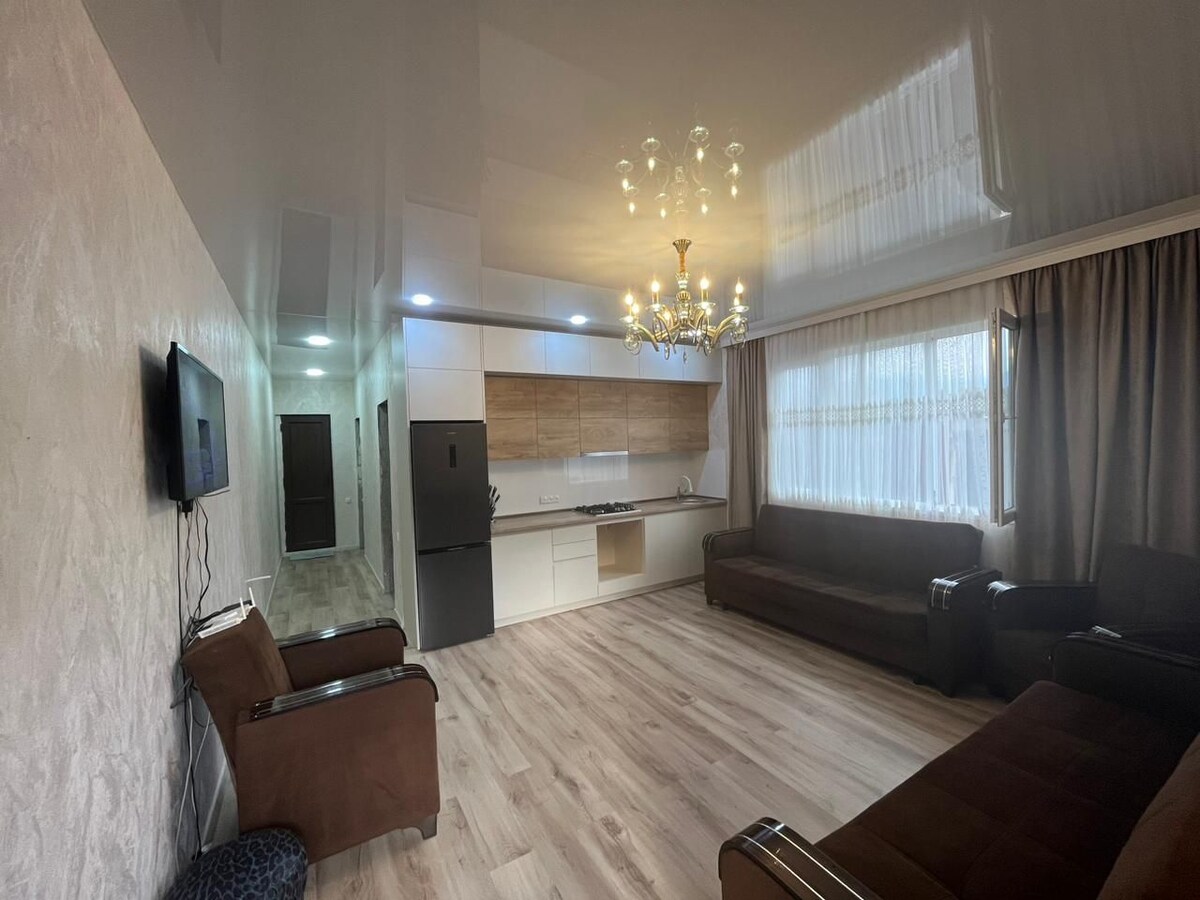 Сдается 3-х комнатная Квартира с Евро ремонтом, максимум на 6 человек - с двумя балконами. очень красивой части города на улице 26 май дом #26 квартира # 2 В вашем распоряжении находятся две спальни, В гостиной раскладной диван, кухня со всем необходимым, большой балкон. Поблизости расположены кафе, магазины, маршруты городского транспорта. ВСЕ РЯДОМ!!! Расположение до пляжа - 50 м. Есть возможность встретить Вас!