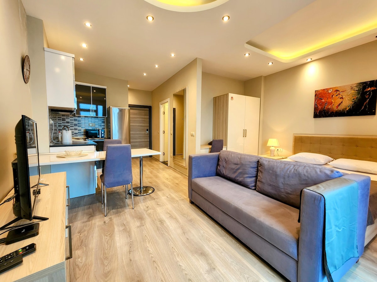 Uživajte u putovanju u centru grada s nevjerovatnim pogledom i lijepim okruženjem. Mirna i opuštajuća atmosfera će stvoriti savršene uslove za vašu porodicu i prijatelje. Do plaže se može doći za dvije minute, a stan je okružen raznim odličnim kafićima i restoranima.