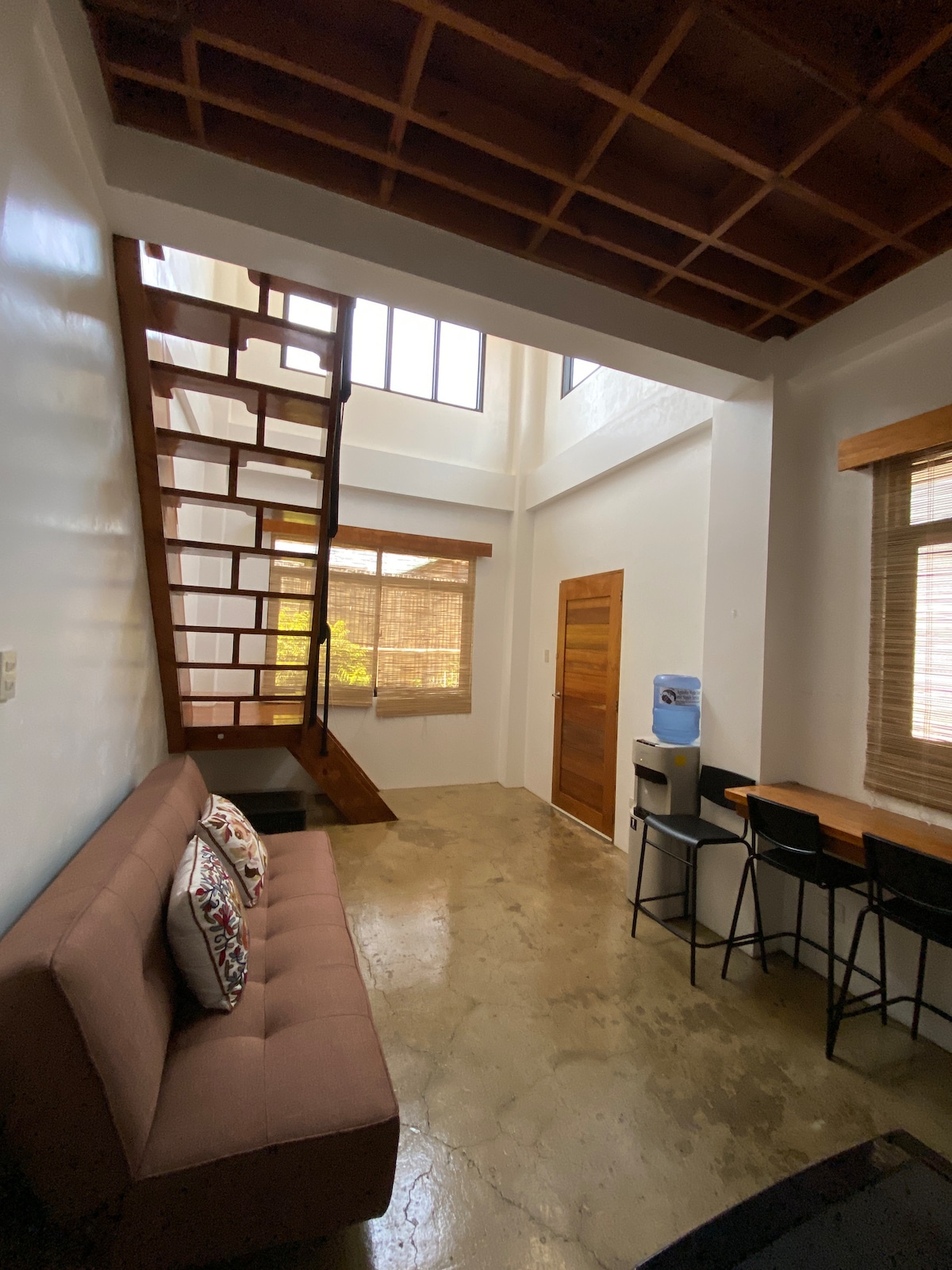 Casa Ellyse is a modern industrial Filipino kubo beach villa located in Surftown, La Union. Live in the Surftown vibe with direct beach access, 1.2km away from the exciting surf spot of Urbiztondo beach. We can accommodate up to 24 pax. (Airbnb limit 16 pax, above 16pax pay upon arrival) Casa Ellyse is a unique stay with kitchen, outdoor patio towels and toiletries. Units depend on number of guests MARGARET LOFT:14 pax MATEO TINY HOME:6-8pax MARCO TRIANGLE HUT:2pax MIGUEL TRIANGLE HUT:2pax