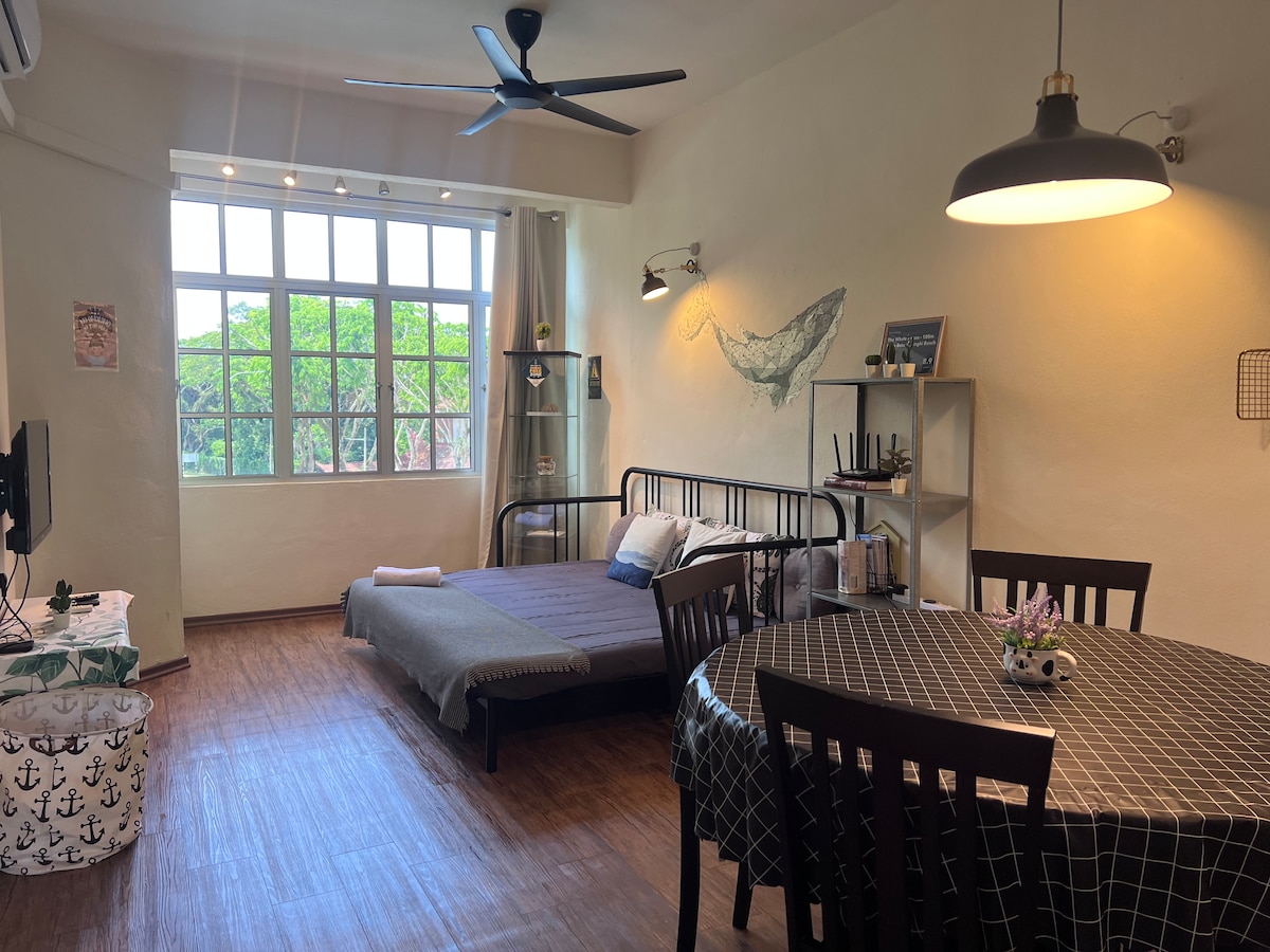 Apartman s 2 spavaće sobe S 1 bračnim krevetom 1 bračni krevet (160x200) i 1 super jednostruki krevet *Dodatni madraci na podu se naplaćuju 30 RM/set (platite samo jednom)* Smještaj je vrlo preporučljiv za malu grupu članova porodice ili prijatelja, savršeno može primiti do 8 gostiju Ova mjesta 5 minuta vožnje od Gurney Plaze 20 minuta vožnje od Batu Ferringhija 5 minuta hoda od bolnice Gleneagles Dobro opremljen sa - Neograničen Wi-Fi od 300 Mbps TV od 42 inča s TV kutijom koji može pristupiti većini filmova Mašina za pranje veša