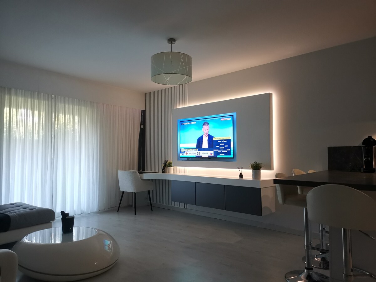 Vrlo moderna unutrašnjost (spavaća soba + kabriolet udobnost) koja se nalazi u mirnom okruženju 5 minuta od srca Arlesa. Mjesto je u ljetnim mjesecima obilježeno mirnim cvrkutom cvrkuta. Spa bazen / jacuzzi će vas osvježiti u vrućim ljetnim danima. Grand Park.