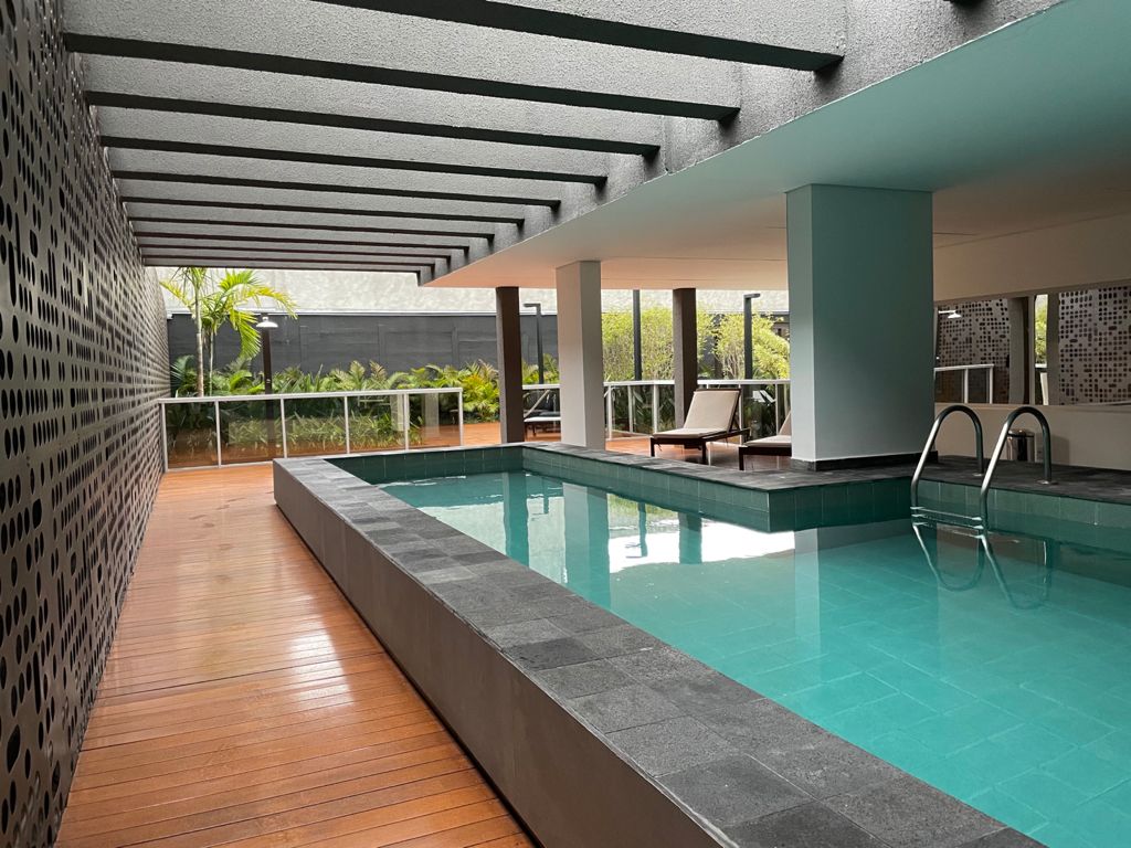 Studio You Faria Lima s bazenom i praznim vozilom.