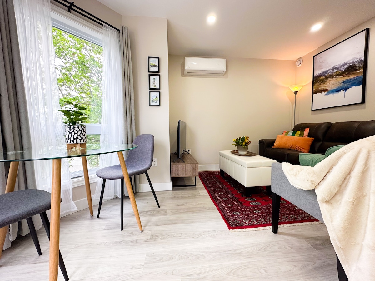 Opustite se u ovom privatnom podrumskom apartmanu s vlastitim zasebnim ulazom za potpunu privatnost. Ostanite povezani uz brzi Wi-Fi i uživajte u ugodnim filmskim večerima s pristupom Amazon Prime Video-u. Smješten samo nekoliko minuta od užurbanog komercijalnog područja s Sobeysima, McDonald 'som i mnogim drugim opcijama; sve što vam je potrebno je nadohvat ruke. Želite li istražiti grad? Centar Halifaxa udaljen je samo 20 do 25 minuta vožnje, što olakšava da doživite najbolje od praktičnosti i mira.