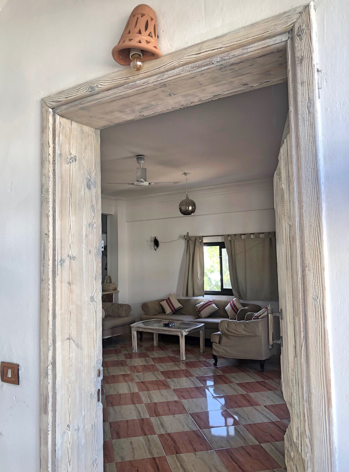 Dobro došli u svoj udoban dom daleko od doma u Dahabu! Smješten na prvom spratu, stan „More”kroz njega nudi prekrasan pogled na more kroz palme i sunčeve zrake, baš kao što se vidi na slici. Ovaj prostrani jednosobni stan je ispunjen ručno izrađenim namještajem i dodacima koji odražavaju organski i prirodni način života koji volimo u Dahabu. Smješten na drugoj liniji direktno uz plažu, udaljen je samo 3 minute hoda do tržnice Assala i 10 minuta hoda do svjetionika.