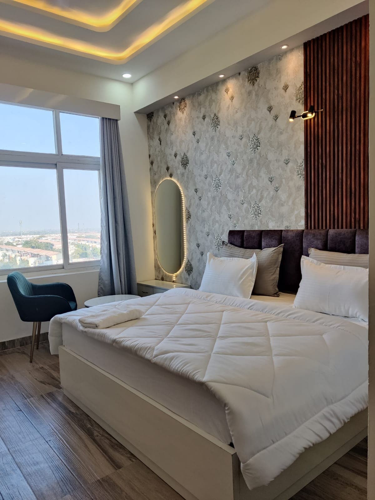 41st-Floor Ultra-Luxury Apartment | Yamuna River View • Elevated high-rise living in the tallest tower of Delhi NCR • Panoramic Yamuna river views from a premium floor • 200 Mbps high-speed Wi-Fi — ideal for remote work & long stays • Seamless food delivery (Swiggy, Zomato & more) • Easy cab access and close to key city attractions • In-complex conveniences: grocery store, salon, cafés & restaurants • Parking available outside the complex