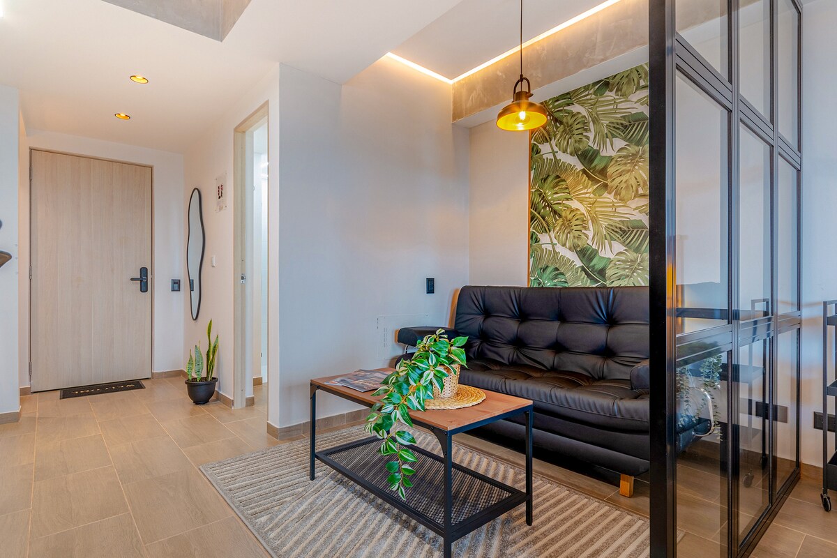 Doživite svježe preuređeno skrovište u mirnoj četvrti Cristales u Caliju. Dizajnirano za najviše 4 gosta, ovo moderno sivo-žuto utočište ima bračni krevet, krevet za jednu osobu i kauč na razvlačenje. Opustite se na prostranom balkonu s visećim ležaljkama i uživajte u hladnom zapadnom povjetarcu. Idealno za duže ili kraće boravke, s brzim Wi-Fi mrežom, potpuno opremljenom kuhinjom i toplim, ugodnim ambijentom.