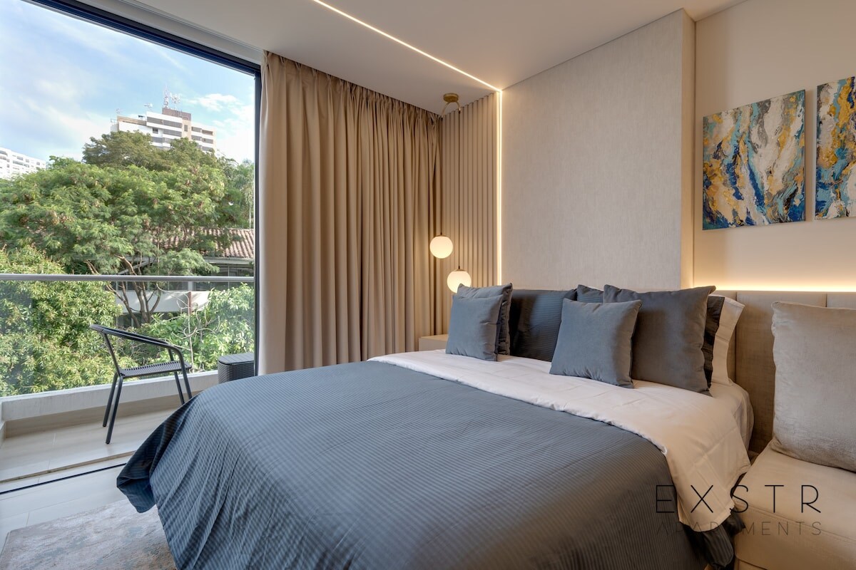🌴 EXSTR APARTMENT • Riomaggiore 805 🛌 Stay in style on the 8th floor of Riomaggiore City Tower. This modern studio features a Euro King bed, full kitchen, fast WiFi, SmartTV, air conditioning, and a safe. Step outside for riverside walks or explore nearby El Peñon, Cali’s hub for dining and nightlife. Back home, relax on your balcony or by the pool with sauna and steam bath. 24/7 security, and elevators. Perfect for travelers who want comfort, convenience, and a touch of luxury.
