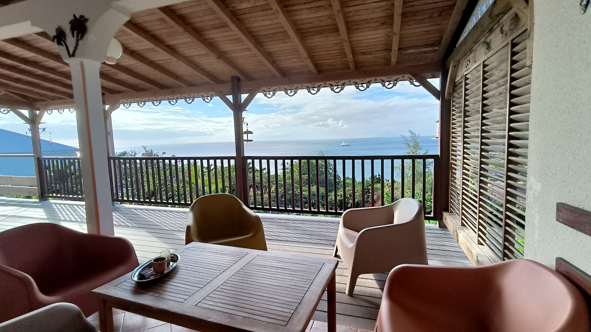 Kuća , 180° pogled na Karipsko more. Plaža udaljena 50 metara. Potpuno opremljena kuhinja (tanjir, mikrovalna pećnica, mašina za pranje suđa, veš mašina itd.), klima uređaj u spavaćim sobama, velika veranda od 50 m2. Bar je otvoren prema verandi. Terasa sa solarijumom i roštiljem. Prostrane sobe sa ostavom. 2 kupatila, 2 WC-a. Dnevni boravak i trpezarija na verandi. Besplatan Wi-Fi (vlakna) Obližnji prometni put koji uzrokuje buku automobila tokom dana. Ova neugodnost nestaje u večernjim i noćnim satima.