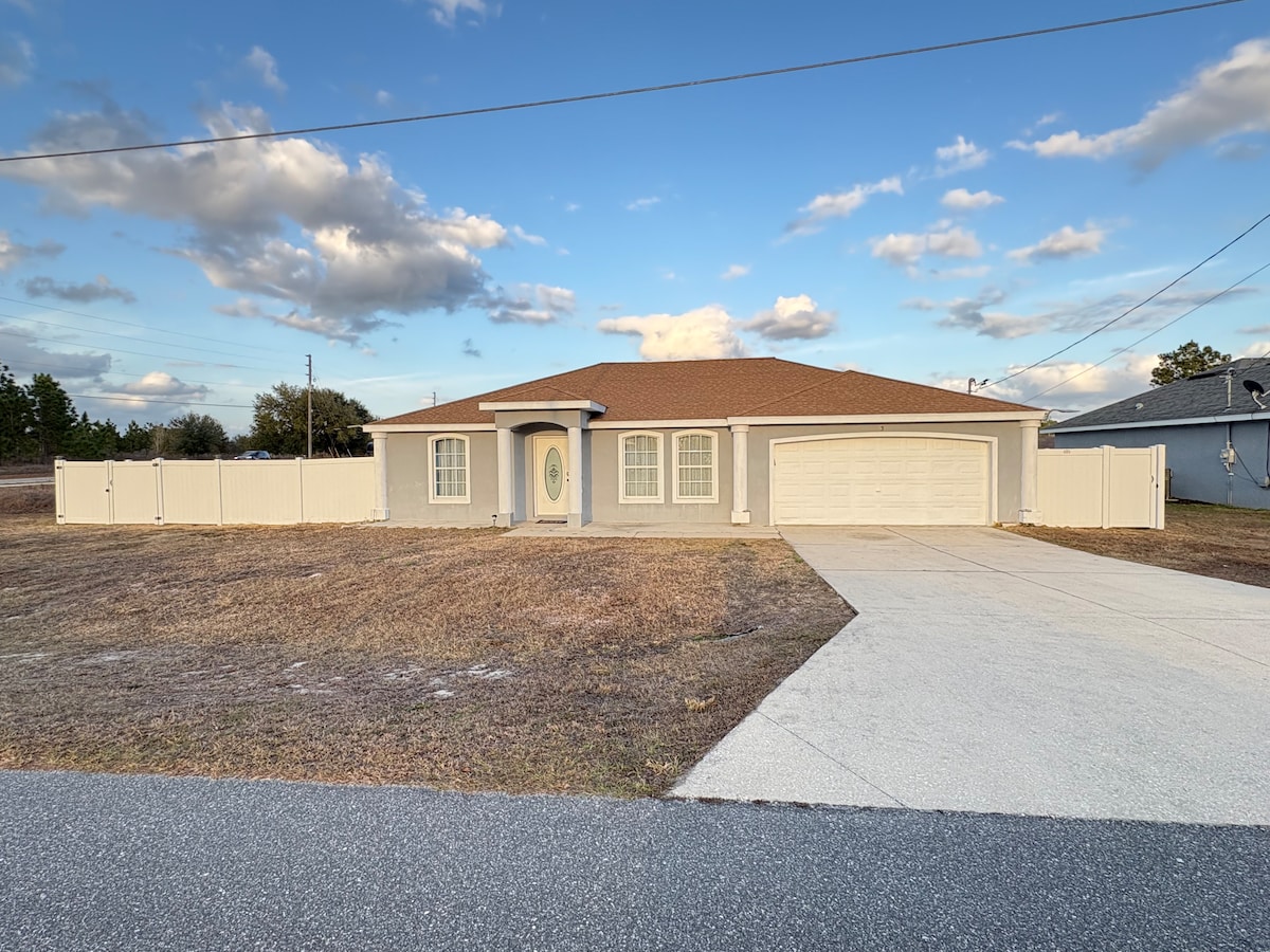 Kuća s 2 spavaće sobe i 2 kupatila, s igraonicom (i vešom) koja se nalazi u garaži. Ovaj smještaj se nalazi u mirnom okruženju i ima parking na prilazu za 2 vozila. - Walk to Cross Florida Greenway (right by Ocala Greenway Disc Golf Course) -10 minuta do državnog parka Silver Springs -15 minuta do Santos Trailheada -20 minuta do centra Ocale -25 minuta do parka Florida Horse -35 minuta do Svjetskog konjičkog centra (18 milja) *sva vremena su procjena jer se saobraćaj razlikuje*