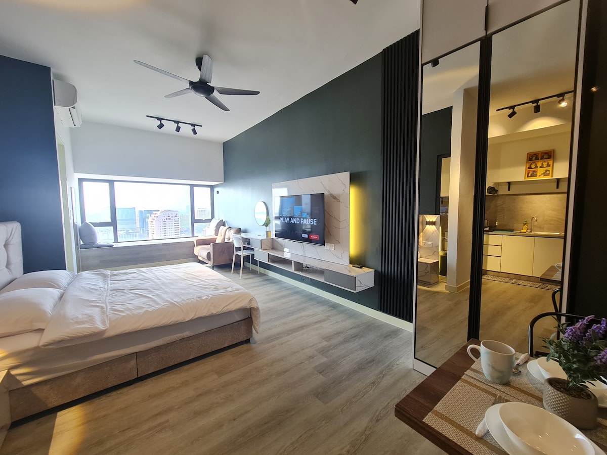 Pažljivo pročitajte prije rezervisanja =) Ovo je jednosoban stan koji se nalazi u srcu grada Malacca! ✤ BESPLATAN brzi Wi-Fi ✤ Smart TV (NETFLIX+Youtube) Nalazi se na VISOKOM spratu s pogledom na grad. **Očekujte neke zvukove s puta dok je okrenut prema gradu. Nalazi se odmah preko puta tržnih centara, restorana i mjesta za zabavu. Prošetajte do popularnih turističkih mjesta kao što su Jonker Street , A'Famosa Fort, St Paul 's Hill & Church, Stadthuys i Jonker Street za 10-15 minuta.