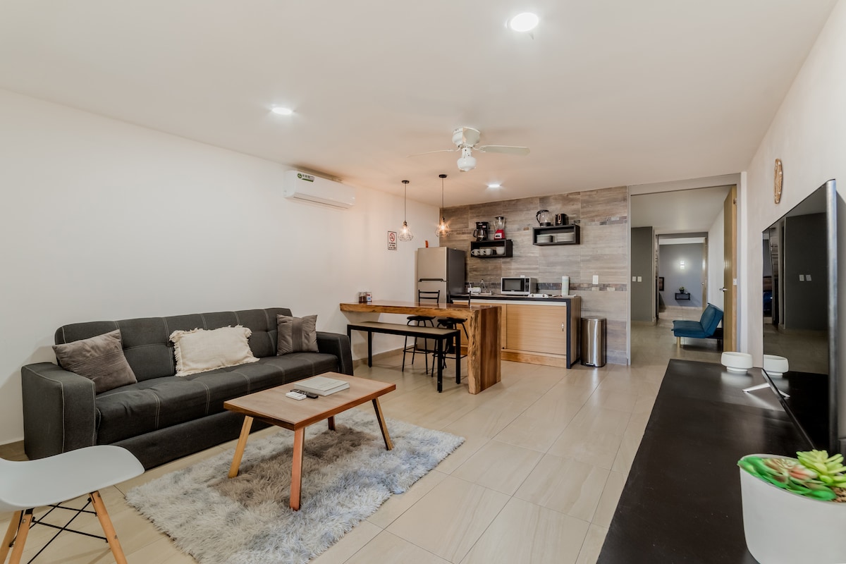 Studio 41. Potpuno renoviran udoban prostor. Nalazi se 10 minuta od Međunarodnog aerodroma Cancun i 10 minuta od centra grada. Stan je raspoređen u 1 sobi sa kupatilom i dnevnim boravkom sa kuhinjom. Kuhinja ima mašinu za suđe, minibar, električni šporet i sve posuđe. To je miran i udoban prostor za kraće boravke i idealan je za duže boravke.