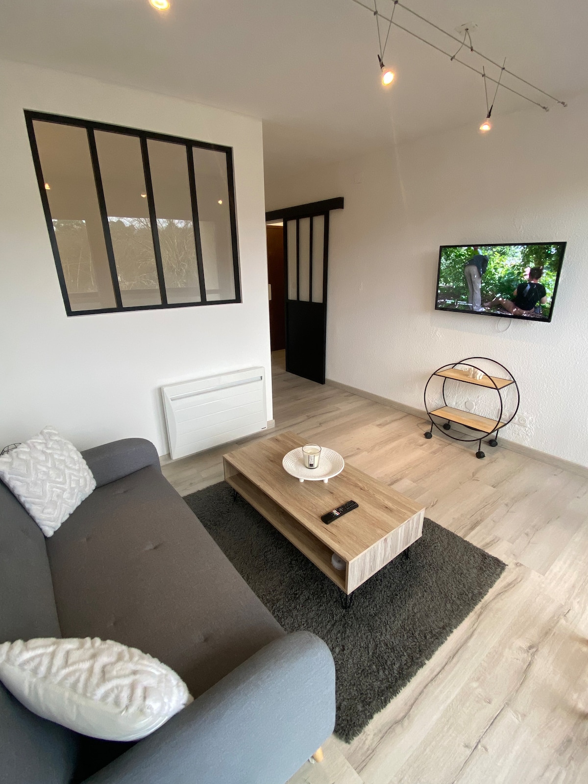 Udoban stan od 39 m2 koji je u potpunosti opremljen u centru grada (par, porodica, profesionalci) ✨ Posebnosti vašeg boravka: Prekrasan dnevni boravak s otvorenom i opremljenom kuhinjom Prijatan trpezarijski sto za 4 osobe Udoban dnevni boravak s kaučem na razvlačenje Moderna spavaća soba (12 m²) Privatna terasa s pogledom na pejzaž obrubljen drvećem Besplatno rezervisano parking mjesto Nivo vrta (nekoliko stepenica da biste mu pristupili) Poslovni 💼 boravci su dobrodošli (tihi, brzi, u blizini sadržaja)