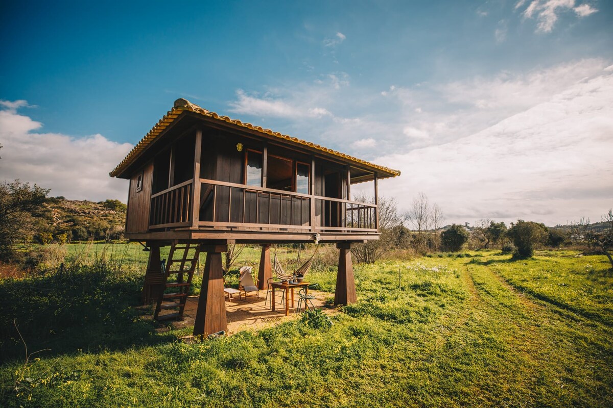 The two wooden houses, are set in a tranquil cork and eucalyptus environment. You´ll be rewarded by green grounds. The air is beautifully scented by the trees. As soon as you arrive, “the final 600 meters are on an unpaved road, typical for the Algarve countryside,easily accessible with a regular car and part of the boho, slow-living experience” you can go for a swim in the azure pool or read a book on your terrace. As serene as you could hope to find, yet an easy drive from wonderfull beaches.