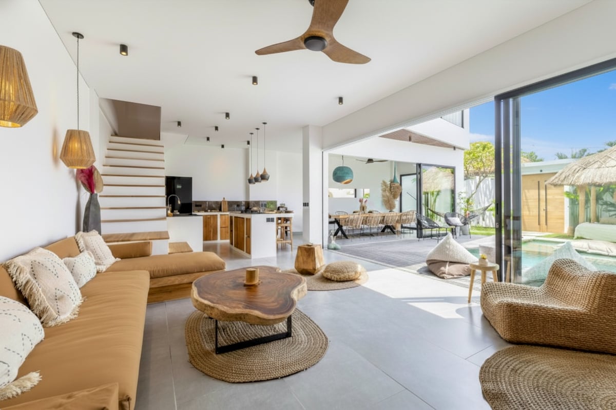 Dobro došli u svoju privatnu oazu na Baliju! Ova luksuzna vila s tri spavaće sobe idealno je smještena samo 300 metara od plaže i živopisnih plaža Batu Bolong i Echo u Cangguu. Uronite u najbolje kafiće, klubove na plaži i mjesta za jogu na Baliju dok uživate u prekrasnim zalascima sunca koji će vam oduzeti dah. S neograničenim svjetlovodnim internetom do 200 Mbps, možete se opustiti sa stilom i ostati povezani.