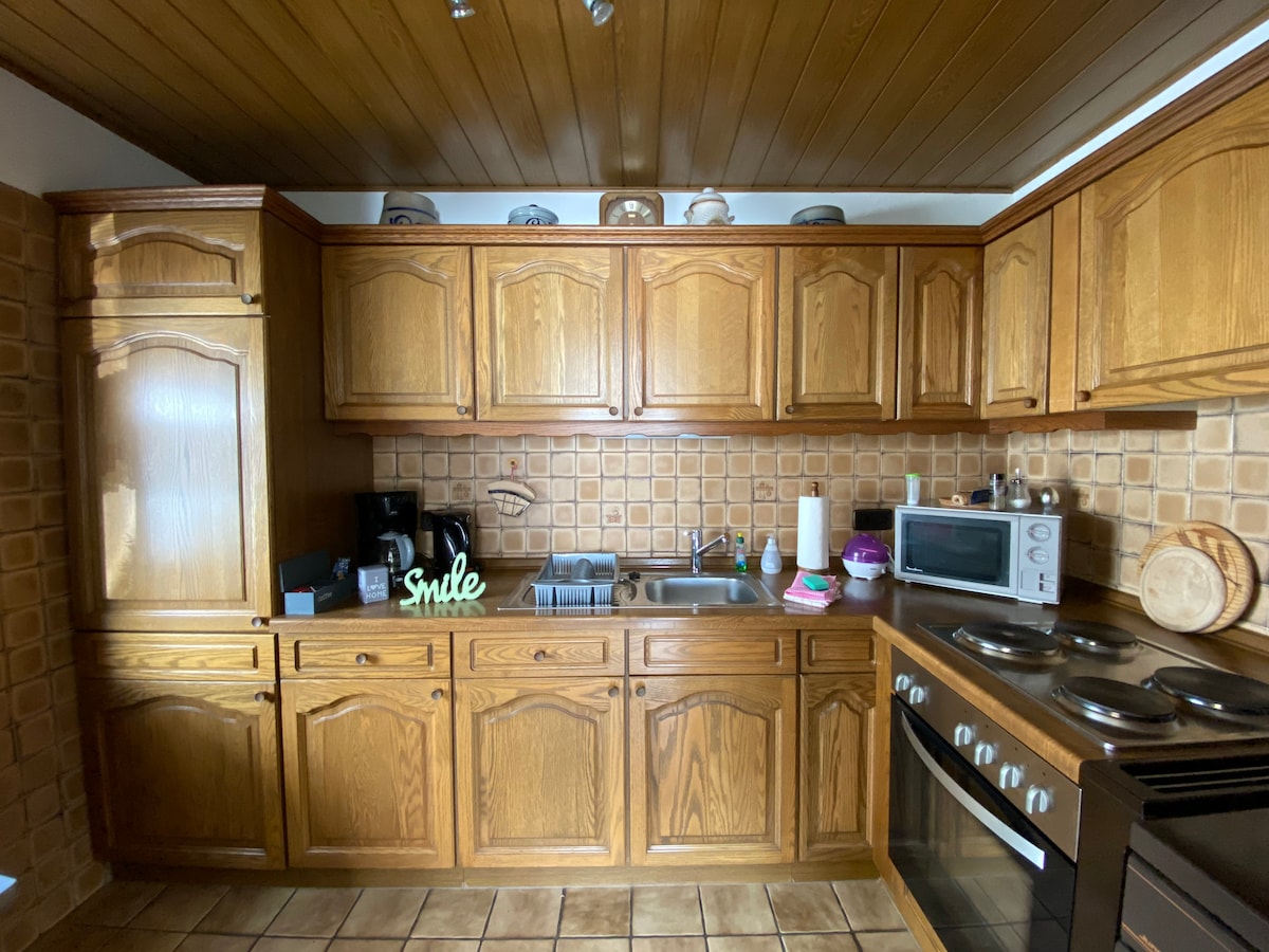 Obnovljeno s ljubavlju... Uživajte u skoku u hladni Maar (30 m), zalasku sunca u dvorcu (80 m), planinarenju, biciklizmu ili posjetite poznati Nürburgring (18 km). Kuća se pridružuje staroj sa modernim sadržajima i nudi 110 m² sa velikom kuhinjom/trpezarijom sa balkonom, udobnom dnevnom sobom sa dva praktična kauča, jednom spavaćom sobom sa bračnim krevetom i kupatilom, jednom spavaćom sobom sa 4 kreveta za jednu osobu i drugim kupatilom u prizemlju.