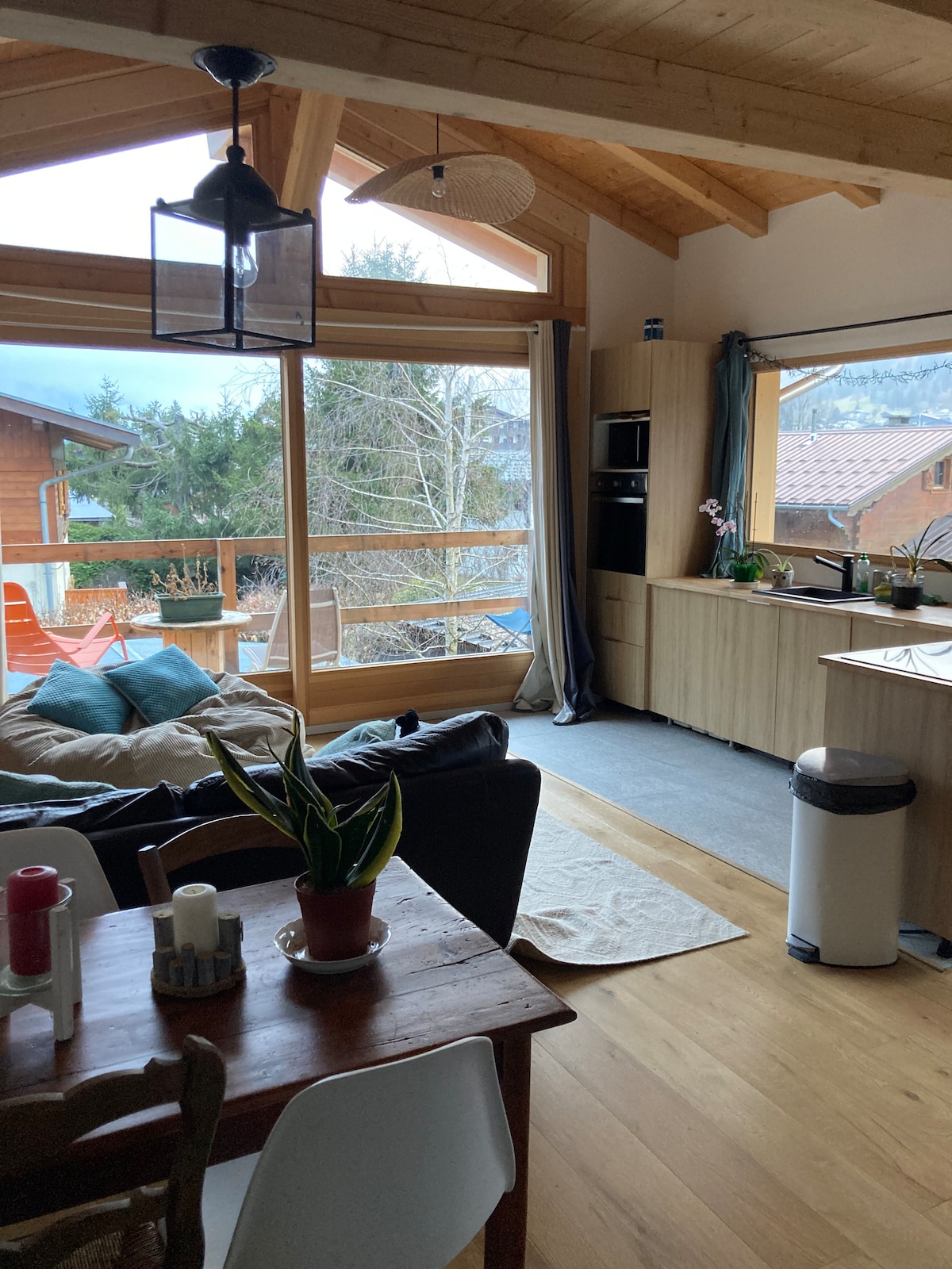 Smještena iznad šume i rijeke, naša svijetla i udobna seoska kućica se nalazi u mirnom području i nedaleko od prirode, rijeke, počevši od pješačkih staza i 3 minute od šatl prevoza(funkcionalno zimi) Idealno potkrovlje za opuštanje i opuštanje pored kamina ili u masažnoj kadi. Savršeno za parove. Za više od 2 osobe na zahtjev. Ima 1 spavaću sobu (2 osobe) i 1 otvoreni prostor ispod mezanina s televizorom i udobnim kaučem na razvlačenje.