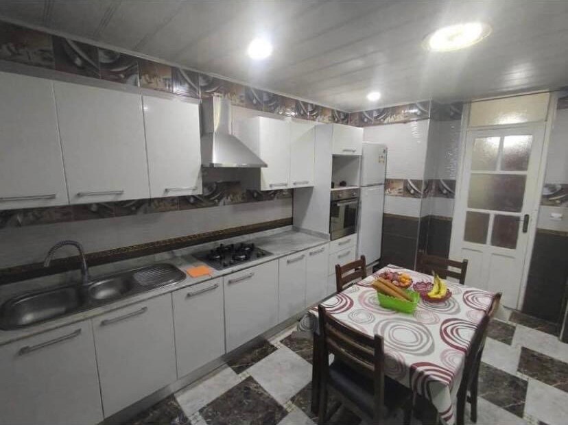 Appartement F3 chaleureux situé à Seraïdi, Annaba, idéal pour un séjour calme en pleine nature. Il dispose d’une terrasse avec vue sur la forêt, d’un salon lumineux avec TV, Wi-Fi et clic-clac confortable, ainsi que d’une cuisine équipée (four, micro-ondes, machine à laver). Salle de bain avec douche à l’italienne et chauffage par chaudière avec sol chauffant. Deux chambres avec dressing. Aire de jeux et source d’eau naturelle à proximité.