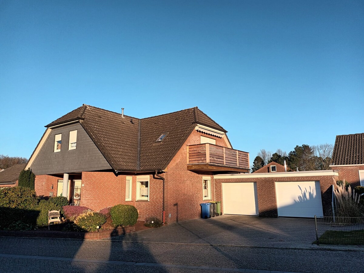 Diese Ferienwohnung in der ersten Etage eines Einfamilienhauses besteht aus einem Schlafzimmer für drei Personen, einer Küche mit neuer Einbauküche, einem gemütlichen Wohnzimmer und Badezimmer mit Dusche, WC und Waschbecken. Vom Wohnzimmer aus ist ein Balkon erreichbar. Im Garten steht den Gästen separat eine Terrasse mit Grillmöglichkeit zur Verfügung. Fußläufig sind im Ort Hage Einkaufsmöglichkeiten, kleine Geschäfte, Restaurants, Ärzte, Apotheke und ein Fahrradverleih erreichbar.