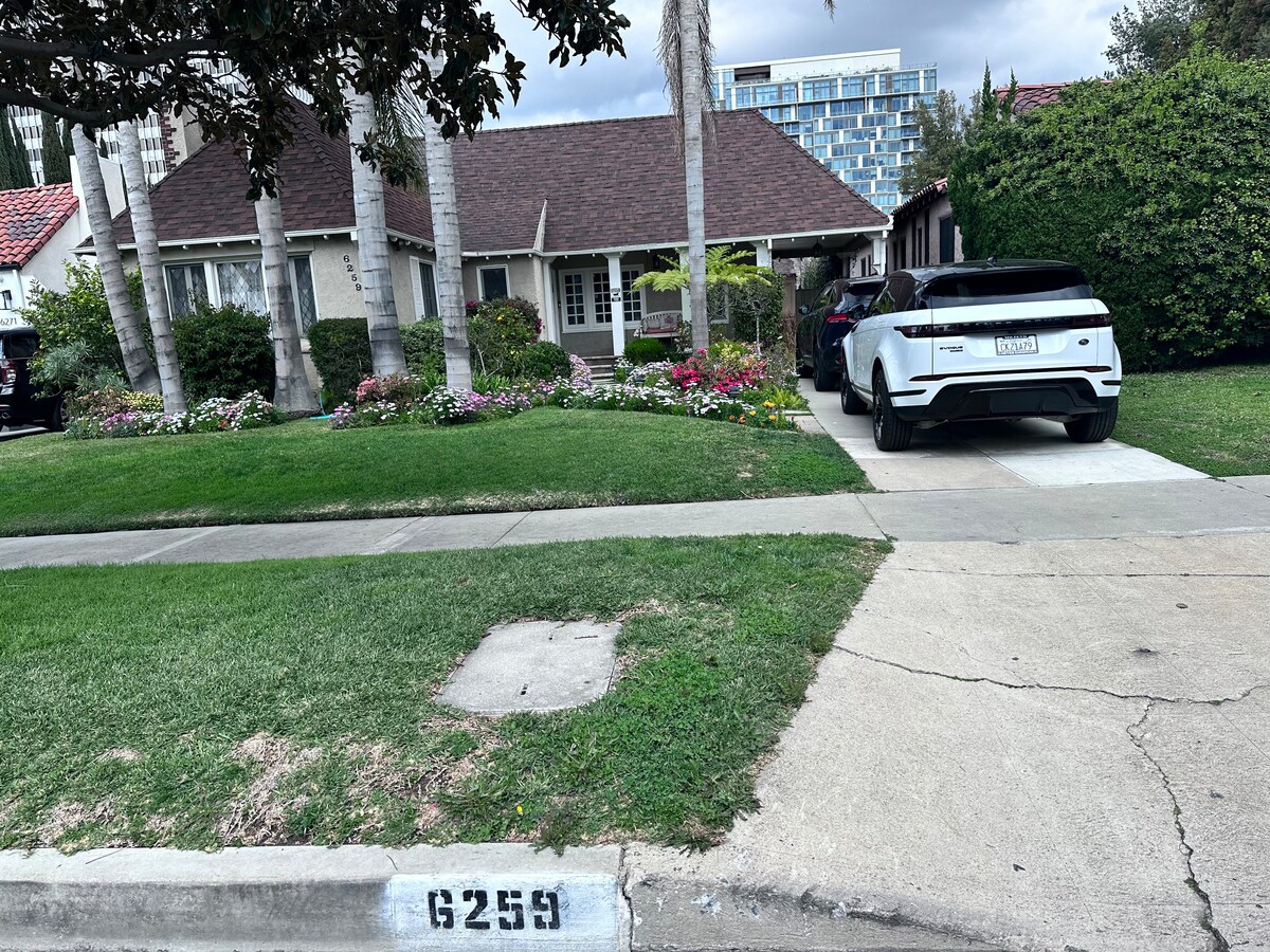 Doživite prekrasnu privatnu gostinjsku kuću 400 SF s modernim kupatilom zajedno s luksuznim bračnim krevetom u Kaliforniji, udobnom sofom i velikim televizorom ravnog ekrana. Veliki frižider, mikrovalna pećnica, aparat za kafu i aparat za espresso Prošetajte 3 minute do Museum Rowa i The Grovea, 20 minuta do Beverly Hillsa. Također ćete upoznati našeg ljubaznog zlatnog retrivera Milowa, koji voli biti mažen i uživa u boravku u zatvorenom prostoru. Savršeno utočište, zajedno s namjenskim parking mjestom! 🏡