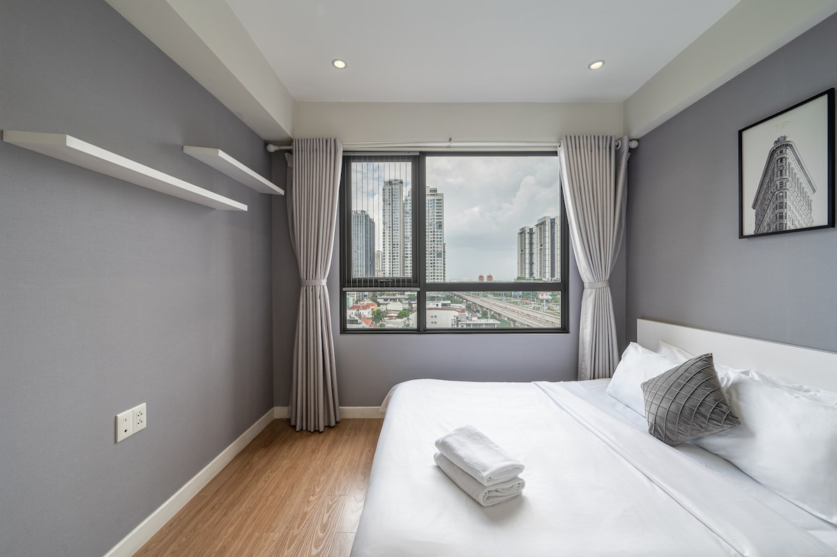 This unique place is designed for a luxury-in-style experience. With a smart sliding door, your living room and bed room are easy connected to maximize spacious 50m2 house. Walking on the BaSon bridge between the condo and D1, you can feel the breeze of Saigon river and spectacular view of the city. By just 5 to 10 min on cab, you can get to city center.