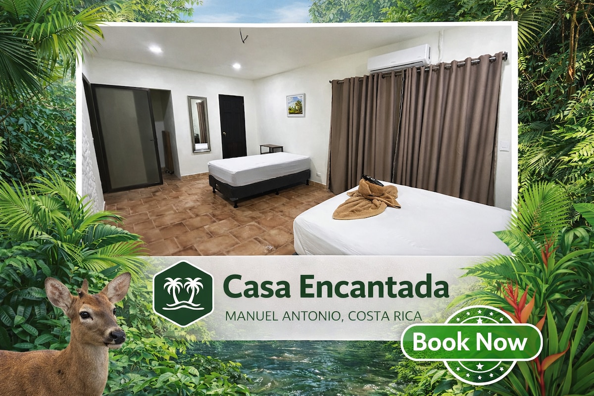 Fully equipped apartment with one double bed and one single bed, ideal for up to 3 guests. Enjoy your own private bathroom, a cozy kitchenette with essentials, and a balcony with a small private terrace perfect for relaxing outdoors. The space includes A/C and fast 100 Mbps Wi-Fi, making it ideal for both leisure and remote work. A comfortable, private stay surrounded by nature and close to everything in Manuel Antonio.