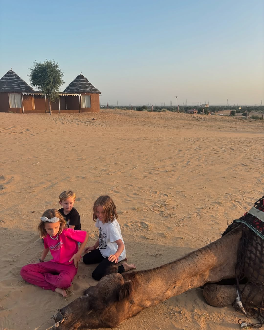 All open place surrounded by sand dunes, desert bushes, trees , temples very close is Camel breeding farm and city too. No one in the immediate neighbourhood. And is very SAFE for anyone to stay. Sometimes we get to see blue bulls, Camels, Sheep/Cattle herders for grazing. And city could be viewed.