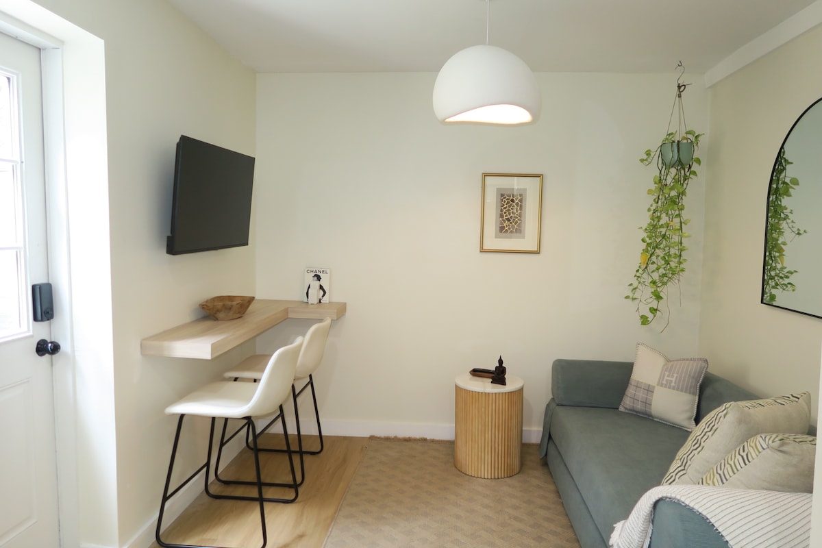 Želimo da se osjećate kao kod kuće u našem svijetlom, čistom studio apartmanu. Kuhinja uključuje uređaje pune veličine s većinom svega što vam je potrebno za pripremu omiljenih jela. Vaš ulaz je iza kapije za privatnost u stražnjem dijelu smještaja. Jednostavan BESPLATAN parking na ulici za 1 vozilo samo nekoliko koraka od vašeg ulaza. Gosti dolaze s kodom/bravom bez ključa.