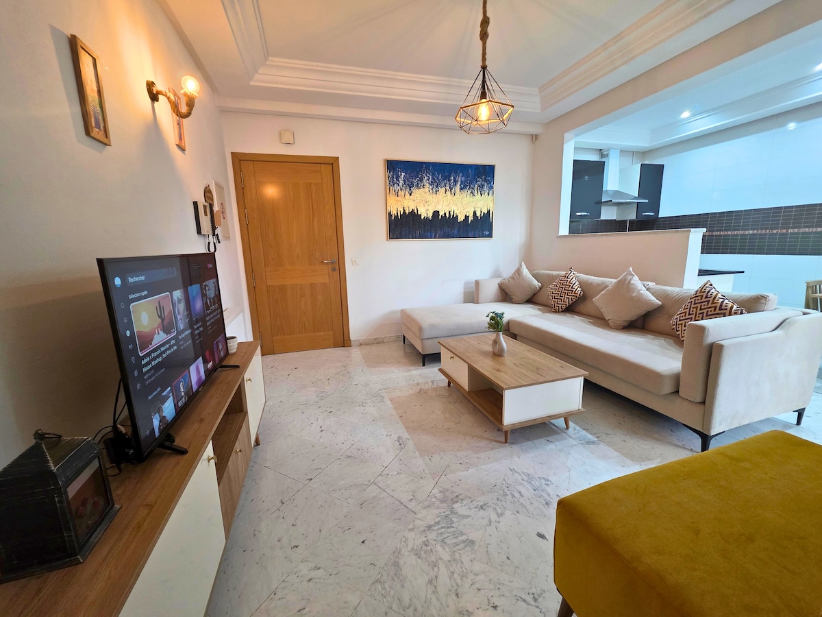 Our cozy apartment offers a unique experience of luxury, and comfort . Natural light floods the whole space . It’s fully air-conditioned,centrally heated with a good internet connection. A private parking place is offered . In the neighborhood, many restaurants ,cafes and shops surround the place making it perfect for outings and family eating experiences. Different attractions and entertainment sites are near . Besides it is halfway between Tunis downtown ,Sidi Bou Said, Carthage and Marsa