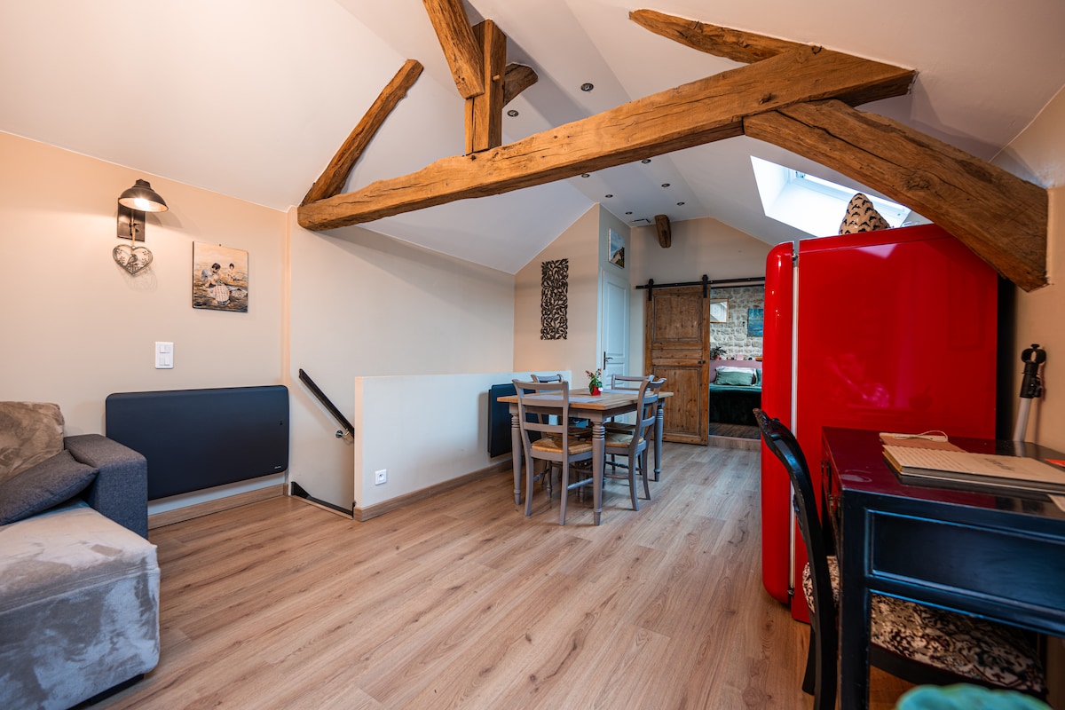 Smješten u historijskom centru Vernona, u blizini trgovina i ruba mora, moj studio je na 2. spratu (bez lifta) male poludrvene zgrade. Nudi spavaću sobu s bračnim krevetom, kupatilo, čajnu kuhinju i kauč. Savršeno je za par koji posjećuje Giverny ili poslovnog putnika koji boravi u tom području.